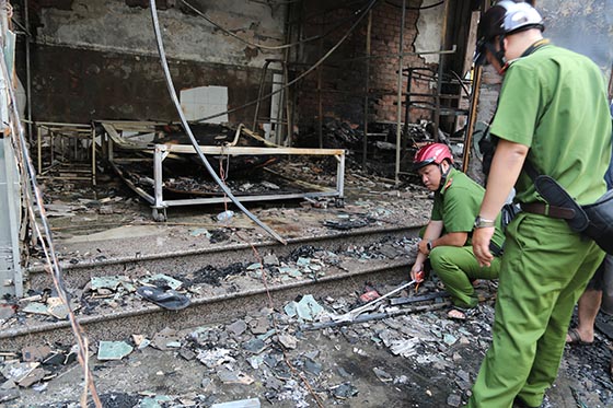 Các lực lượng chức năng khám nghiệm hiện trường vụ cháy